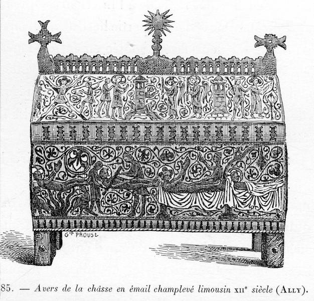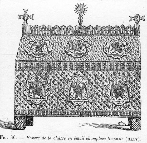 Pignons de la châsse garnis de plaques gravées du 17e siècle.