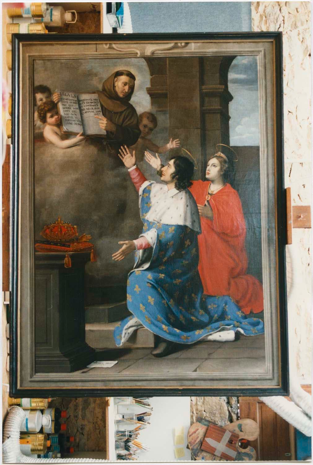 tableau : saint François-d'Assise remettant la règle du tiers ordre à saint Louis et à sainte Elisabeth de Hongrie