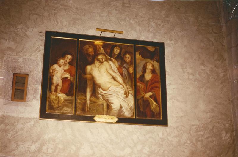 tableau (triptyque) : la Mise au tombeau, saint Jean l'évangéliste, Vierge à l'Enfant