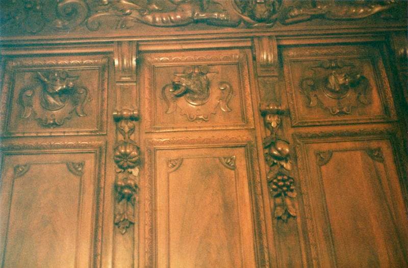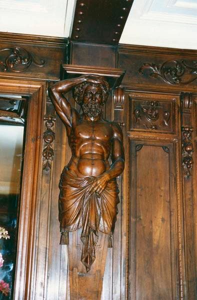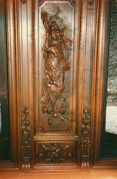 chasseur ; faucon ; hôtel ; château ; atlante ; vieux ; femme ; en buste ; frise ; mascaron ; triton ; ornement à forme végétale ; rinceau ; console ; guirlande ; fruit ; ornement à forme animale ; chien ; coq ; sanglier ; volaille ; cartouche ; chasse ; lièvre ; cerf ; trophée
