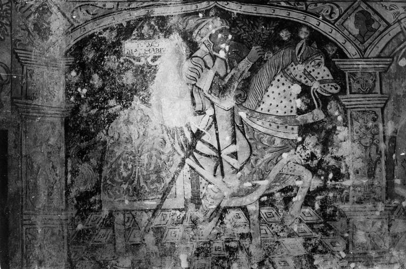 POP | Plateforme ouverte du patrimoine2 peintures monumentales : les Neuf preux, le miracle de saint Hubert, scènes de fiançailles, la Conversion de saint Hubert, peinture allégorique