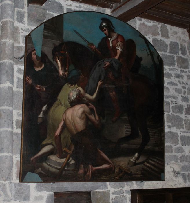 POP | Plateforme ouverte du patrimoinetableau : Charité de saint Martin à cheval partageant son manteau, aux portes d'Amiens en l'an 334 et donnant la moitié à un pauvre hère nu et grelottant de froid (La)