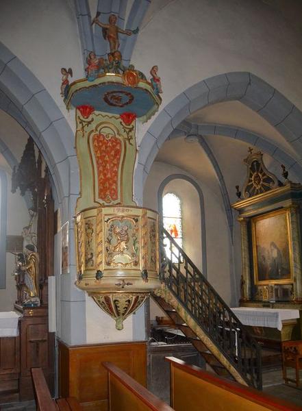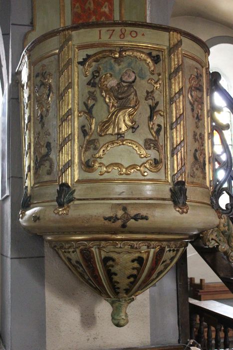 saint Pierre apôtre ; rinceau ; angelot ; ange : palme, trompette ; coquille ; motif rocaille