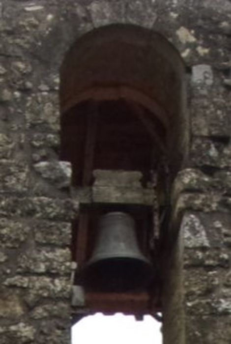 transcription : +IHS MARIA. S.MAISSANT DE SESTORY 1627. CLAUDE DAUPHIN, ESCUYER, SIEUR DE LA KADOVE, PARIN. DAMOYSELLE SUSANNE BARDOUNEAU, FAME DE CHARLES JULIEN CHEVALIER SEIGNEUR DU MENYER