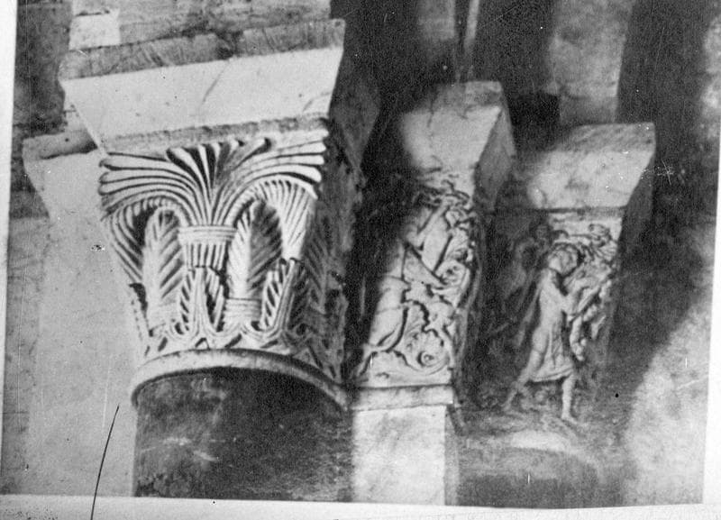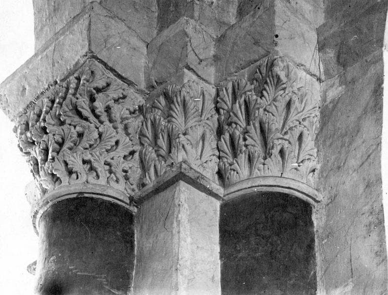 Quatre groupes de trois chapiteaux