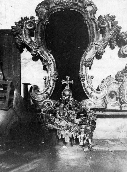 Des têtes d'ange en bois doré ont dû été ôtées d'un coup de ciseau par les voleurs.