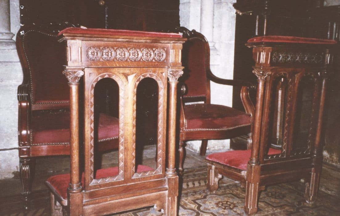 POP | Plateforme ouverte du patrimoineensemble comprenant 2 pries-Dieu, 4 scelettes, 10 tabourets ronds et 2 carrés