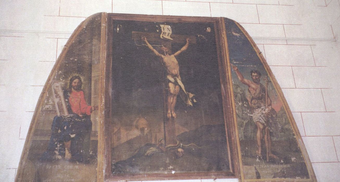 Trois peintures à l'huile réunies en un triptyque.