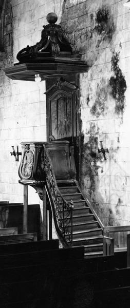 Archives du patrimoine, liasse G 277 : la chaire avait été faite pour les ursulines de La Rochelle ce qui explique que le saint Augustin en évêque qui décore la cuve porte un coeur enflammé.