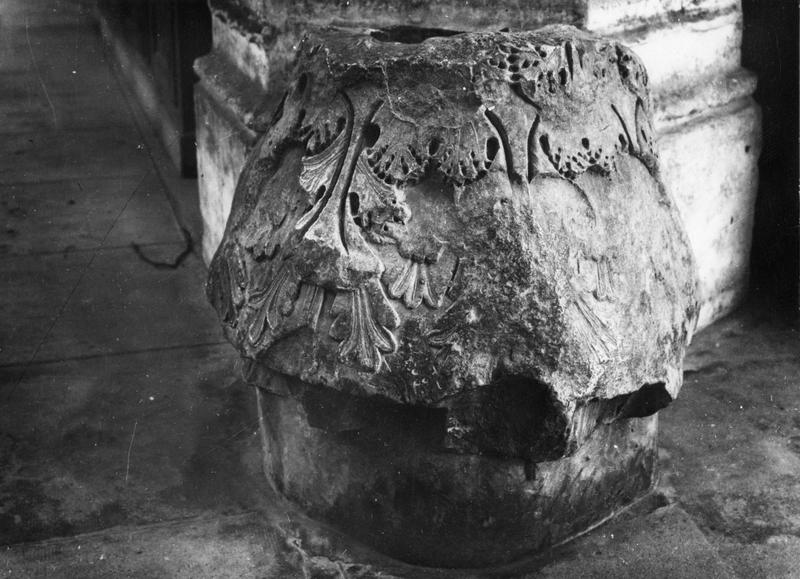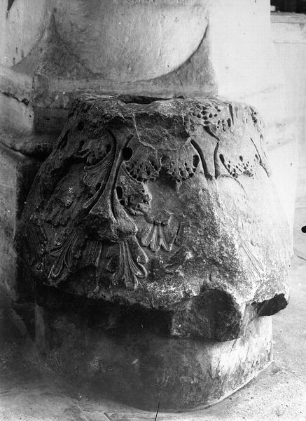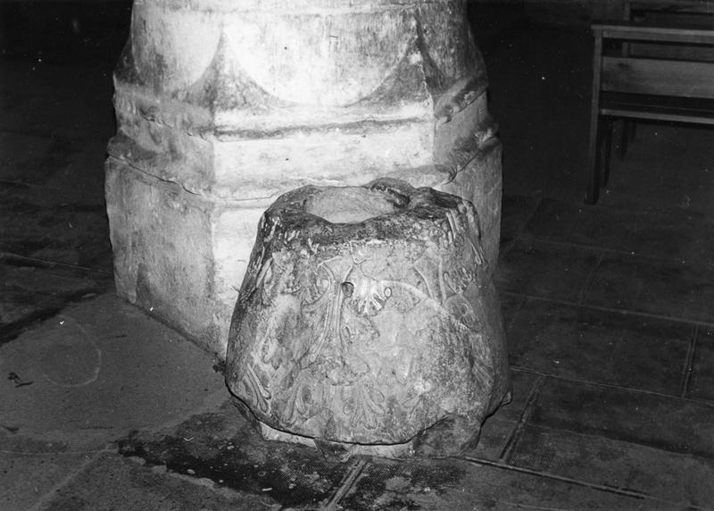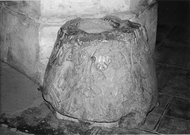 Bénitier en forme d'un chapiteau corinthien qui proviendrait peut être d'un temple d'époque gallo-romaine