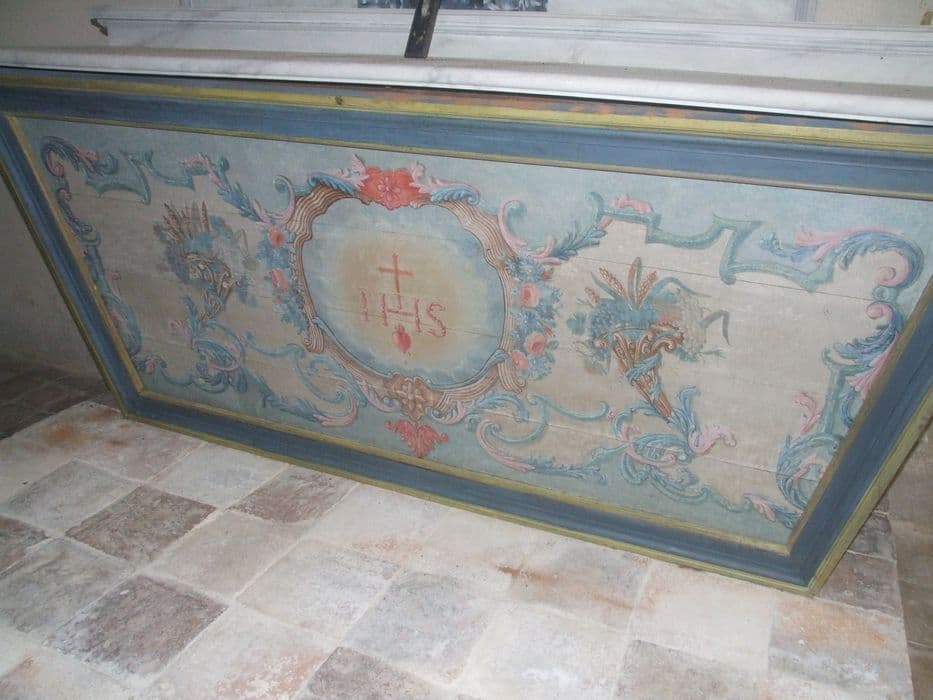 Devant d'autel trapézoïdal amovible et pourvu de crochets se fixant dans le tombeau de l'autel