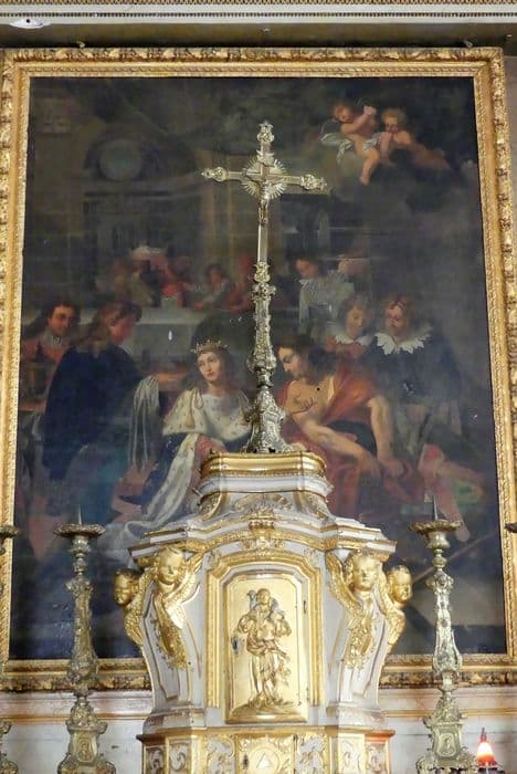 Ce tableau garnit le retable du maître-autel de la chapelle de l'hôpital Saint-Louis.