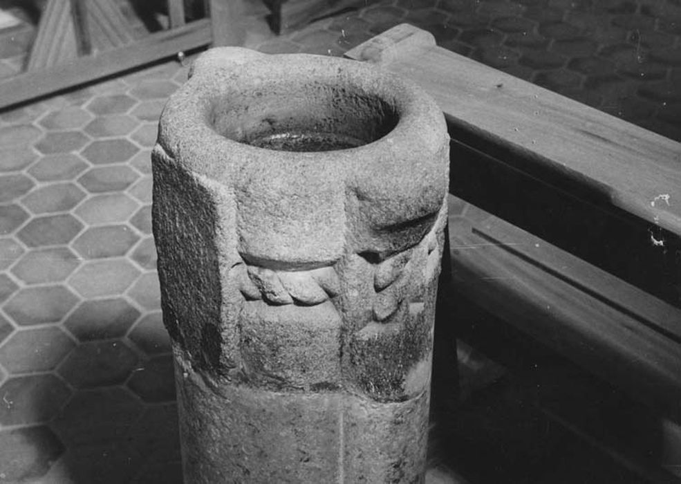 Bénitier daté du 14e siècle ou du 15e siècle.