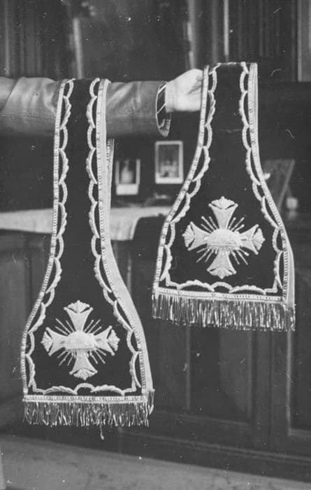 chasuble ; étole de clerc ; manipule ; bourse de corporal