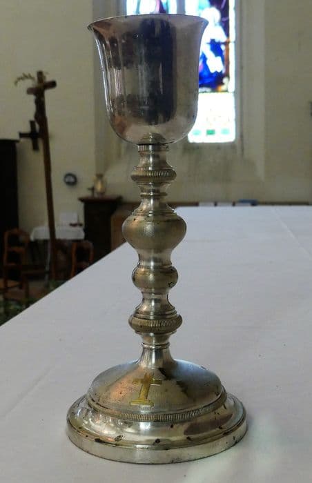 Calice en cuivre argenté et coupe dorée, à décor très sobre.
