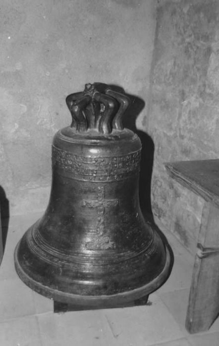 Inscription : Le Roy Louis XIII regnant en France Messire Jacque, Evesque de Xainte et Mr Guy Lanier abbé de Vaux a fait faire cette cloche pour servir Dieu en l'église Saint Etienne de Vaux ce 28 de juin 1638.