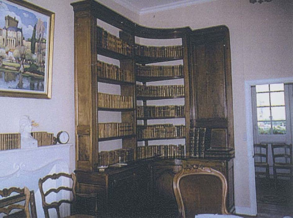 Ensemble de boiseries formant bibliothèque (étagères dans la partie supérieure) et placard (partie inférieure).
