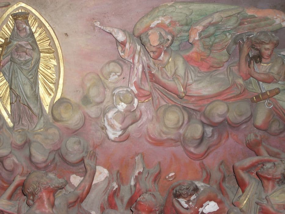 POP | Plateforme ouverte du patrimoineautel (autel latéral) avec son bas-relief : La Vierge désaltérant de son lait les âmes du purgatoire