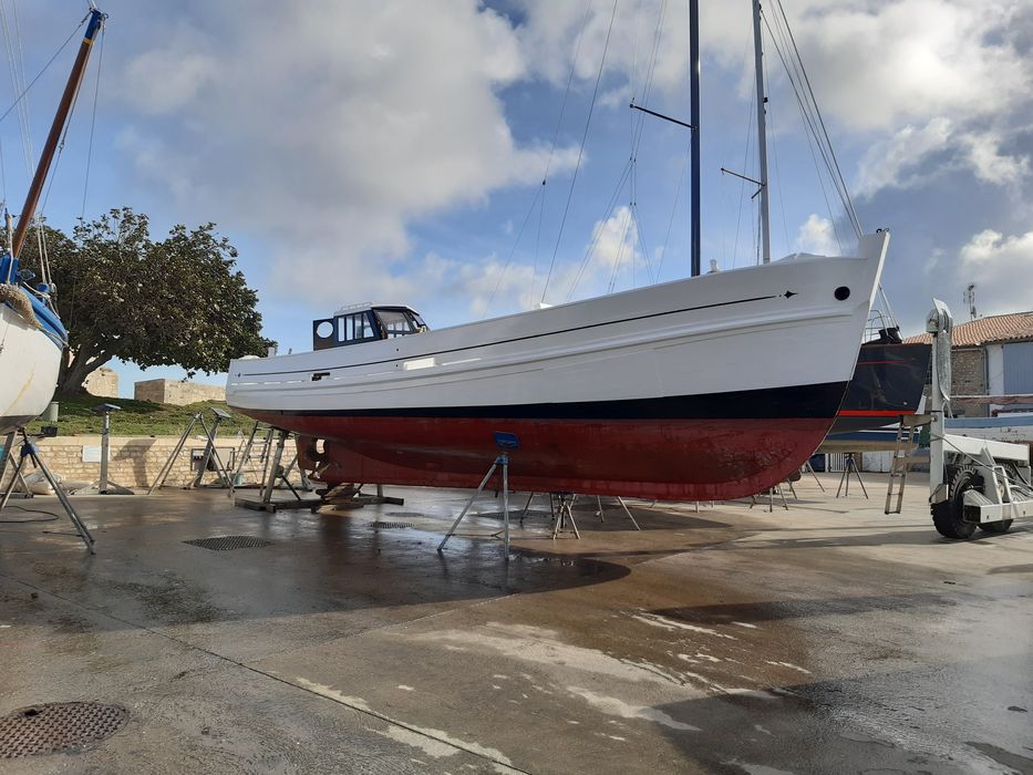 Bateau de pêche avec son moteur Baudoin diesel DP2 60 CV d’origine. Aujourd’hui utilisé à la plaisance. Pinasse de pêche à la crevette et au céteau. Structure axiale en chêne, bordés classiques à franc-bord en chêne sur membrures sciées en chêne et des varangues en bois sciées en chêne.