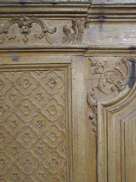 Les éléments de ces stalles sont répartis dans les bas-côtés et sous le clocher. Deux rangs de cinq stalles numérotées 3 à 7 et 12 à 16. Deux ensembles de deux stalles, numérotées 1, 2, 17 et 18. Deux stalles indépendantes et incomplètes, numérotées 9 et 10. Une boiserie d'appui main assemblée constituée de cinq panneaux et six pilastres. Une boiserie d'appui main désassemblée constituée de cinq panneaux et six pilastres.