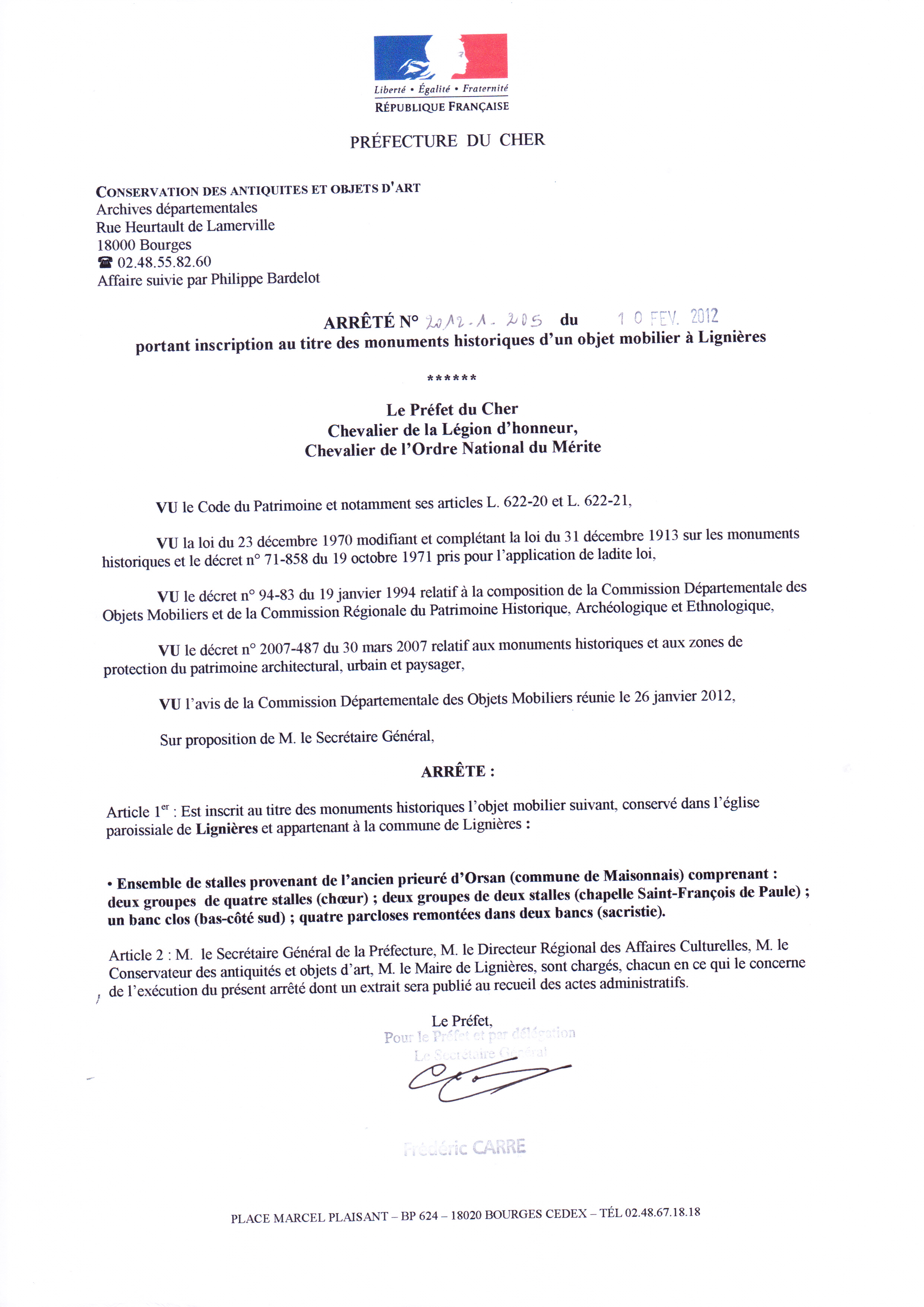 2012/02/10 : inscrit au titre objet
