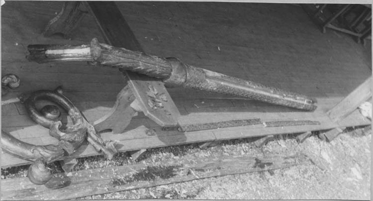 Crosse restaurée en 1967 par Marcel Maimponte ; fixation de la dorure en 1998 par les Etablissements Jean Férignac et Compagnie.