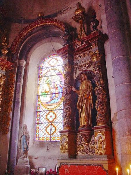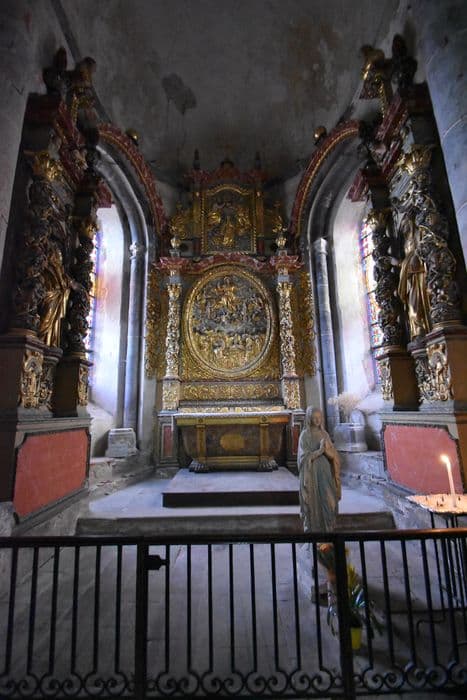 retable architecturé de la chapelle de la Vierge, 2 demi-reliefs : l'Assomption, le Couronnement de la Vierge, et 2 statues : saint Joseph, sainte Anne