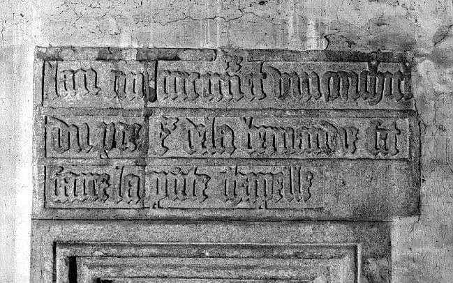 dans la maçonnerie du mur sud du bas-côté sud au niveau de la 3e travée