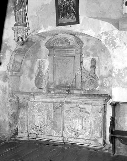 Avant classement : oeuvre en mauvais état ; les différentes dalles de pierre sont disloquées ; l'épitaphe a intégralement disparue ; les effigies de la façade du tombeau ont été bûchées. Restauration par Christian Karoutzos en 2000 : nettoyage et redressement.