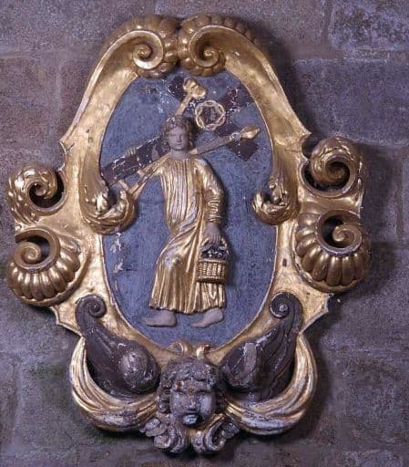 POP | Plateforme ouverte du patrimoinerelief (cartouche d'applique) : Jésus adolescent portant les instruments de la Passion