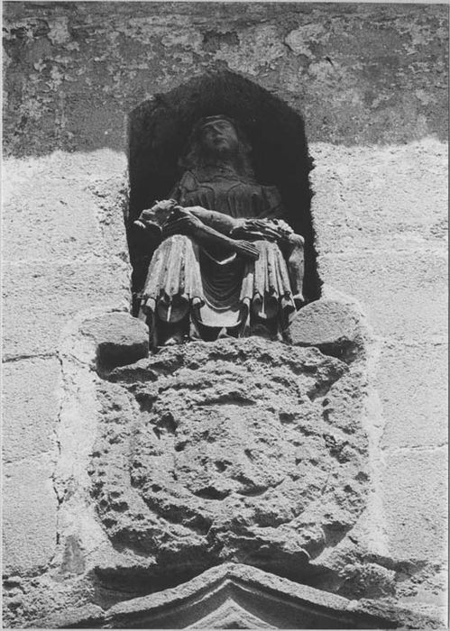Avant classement : oeuvre en mauvais état : disparition totale de la polychromie, le cou de la Vierge, mutilé, a été refait, les pieds du Christ sont cassés.