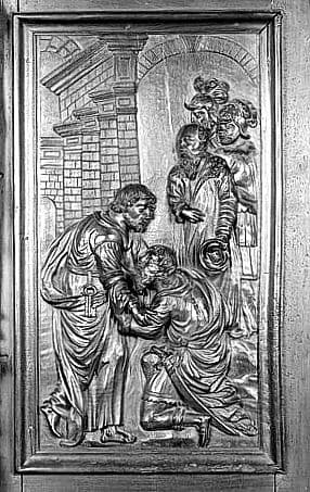 3 bas-reliefs : la Pêche miraculeuse, saint Pierre marchant sur les eaux à l'appel du Christ, la Conversion du centurion Corneille