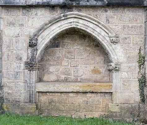 Après la destruction en 1894 de l'église paroissiale d'Ayen bas, une nouvelle église fût édifiée en remployant des éléments anciens tel cet enfeu.