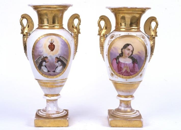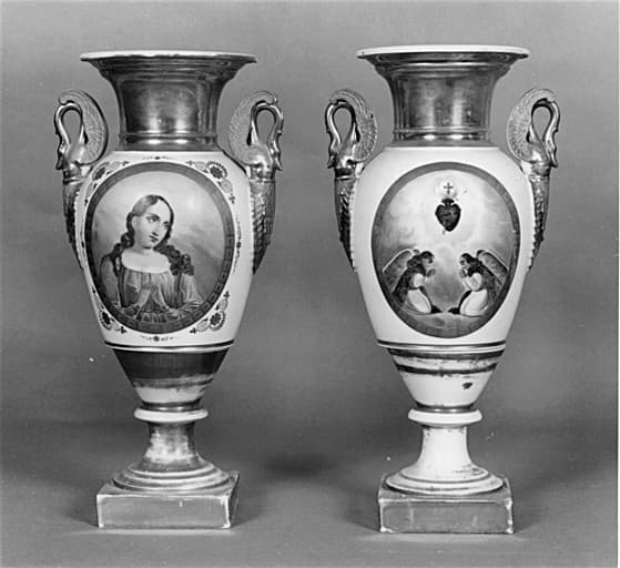 POP | Plateforme ouverte du patrimoine2 vases d'autel : Vierge (?), Adoration du Sacré-Coeur