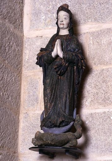 La présence d'un croissant de lune permet d'identifier cette statue à une Immaculée Conception, et non pas à sainte Marguerite d'Antioche. Datée du 17e siècle, il s'agirait d'une représentation de l'Immaculée Conception parmi les plus anciennes connues en Limousin.