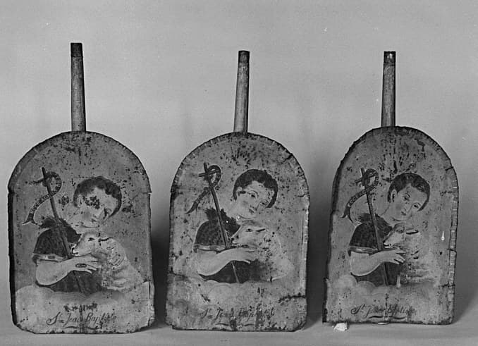 POP | Plateforme ouverte du patrimoine2 panonceaux de cierge de la confrérie des pénitents blancs : saint Jean-Baptiste enfant