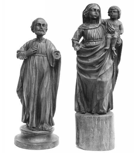tabernacle et 5 statuettes : Vierge à l'Enfant, saint Pierre, saint clerc, anges céroféraires (œuvre volée)