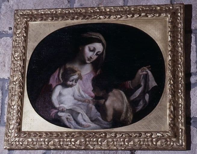 tableau et cadre : Vierge à l'Enfant avec saint Jean-Baptiste