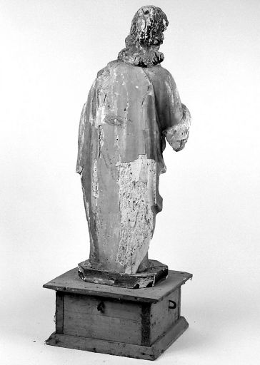 Cette statue de la fin du 17e ou du début du 18e siècle, identifiée comme un Christ lors de la protection, représente en fait un évangéliste.