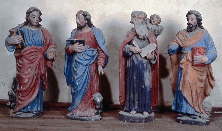 Les statues de saint Jean, saint Luc et saint Marc ont été réalisées dans la 2e moitié du 17e siècle par un atelier local, et par la même main. Celle de saint Matthieu a été réalisée au 19e siècle, sans doute en remplacement de l'original détérioré ou disparu.