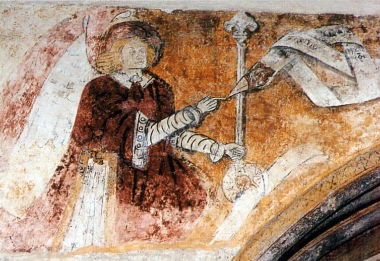 nef, mur nord, 2 travée, autour de l'arc de la chapelle