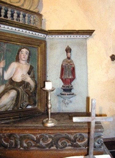5 statuettes de tabernacle : saint évêque, angelots, colombe, ange à la trompette