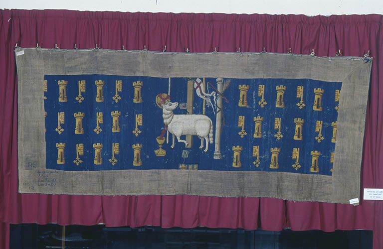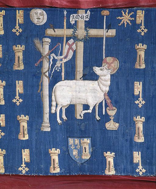 symbole christique (Agneau mystique, Instrument de la Passion, I.N.R.I.) ; armoiries