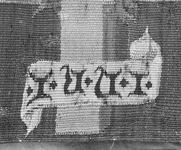 chaîne en laine, trame en laine teintée ; battage, hachues ; pièces sans envers