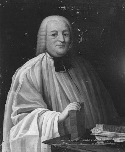 portrait de l'abbé Gandelot, aumônier de la charité, tenant l'histoire de Beaune parue en 1772, ouvrage dont il est l'auteur