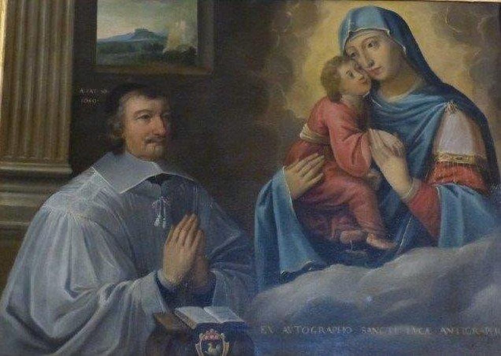 POP | Plateforme ouverte du patrimoinetableau : un chanoine en prière devant la Vierge à l'Enfant