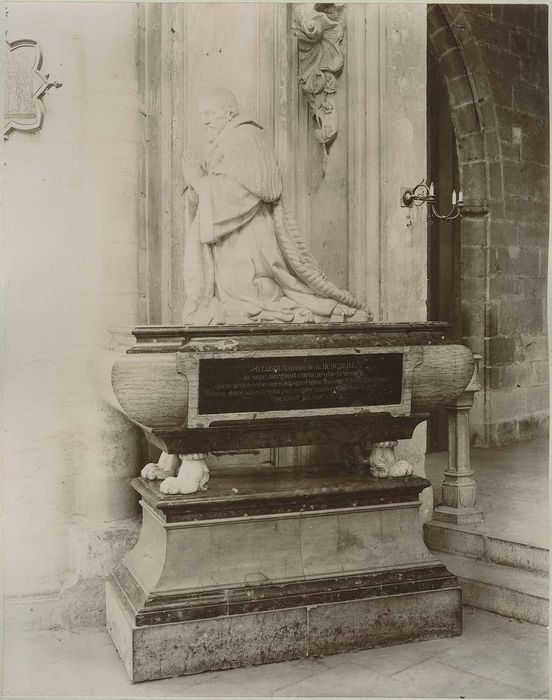 Le socle est celui du gisant de Marguerite Valon, aujourd'hui conservé au musée du Louvre. Oeuvre restaurée en 2012 par Anne Gérard-Bendele.
