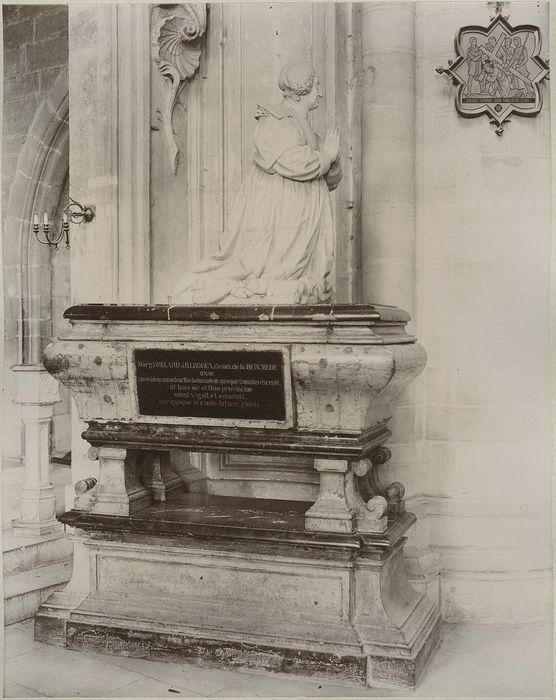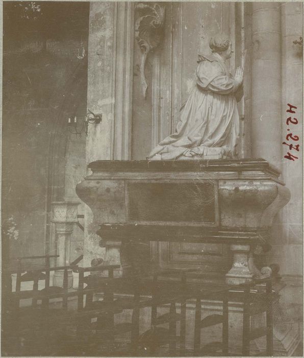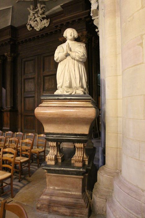 Le socle est celui du priant de Claude Bouchu, conservé au musée des Beaux-Arts de Dijon. Oeuvre restaurée en 2012 par Anne Gérard-Bendele.