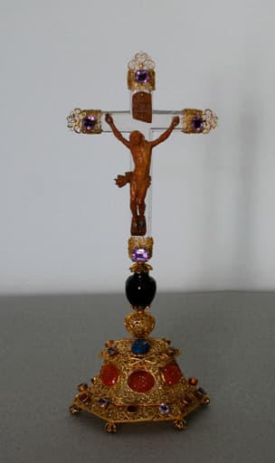 croix : crucifix dit de Christine de Suède, et son écrin