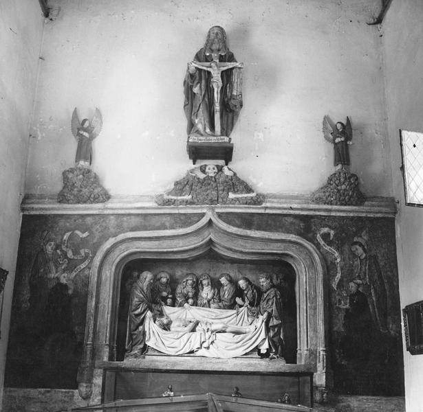 2 statues : anges ailés portant les attributs de la Passion